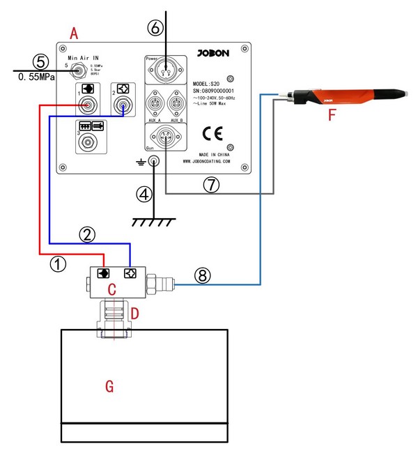 Схема подключения пистолетов к блоку управления