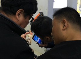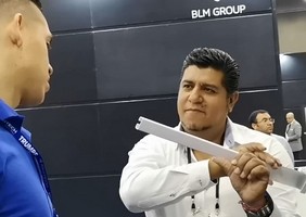 ** Глубокая зигзагообразная канавка 4x30 мм, посетителям предлагается попробовать напыление на выставке и «фонариковое освещение», чтобы проверить эффект напыления.
