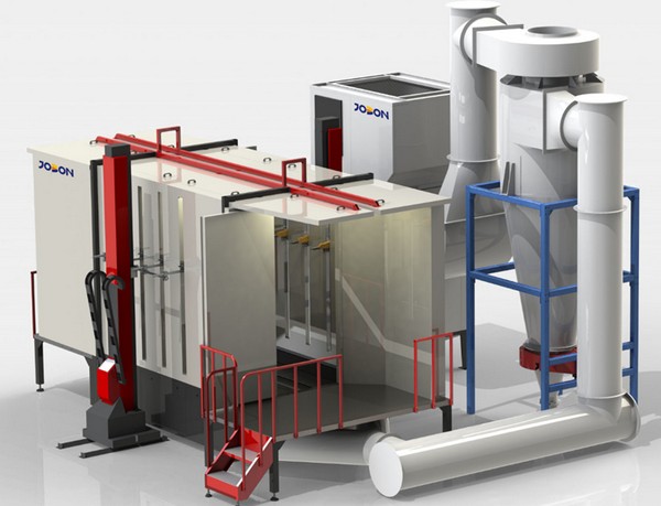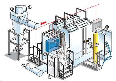 - Высокий коэффициент осаждения порошка на изделии достигается благодаря низкому полу камеры и вертикальному потоку воздуха.